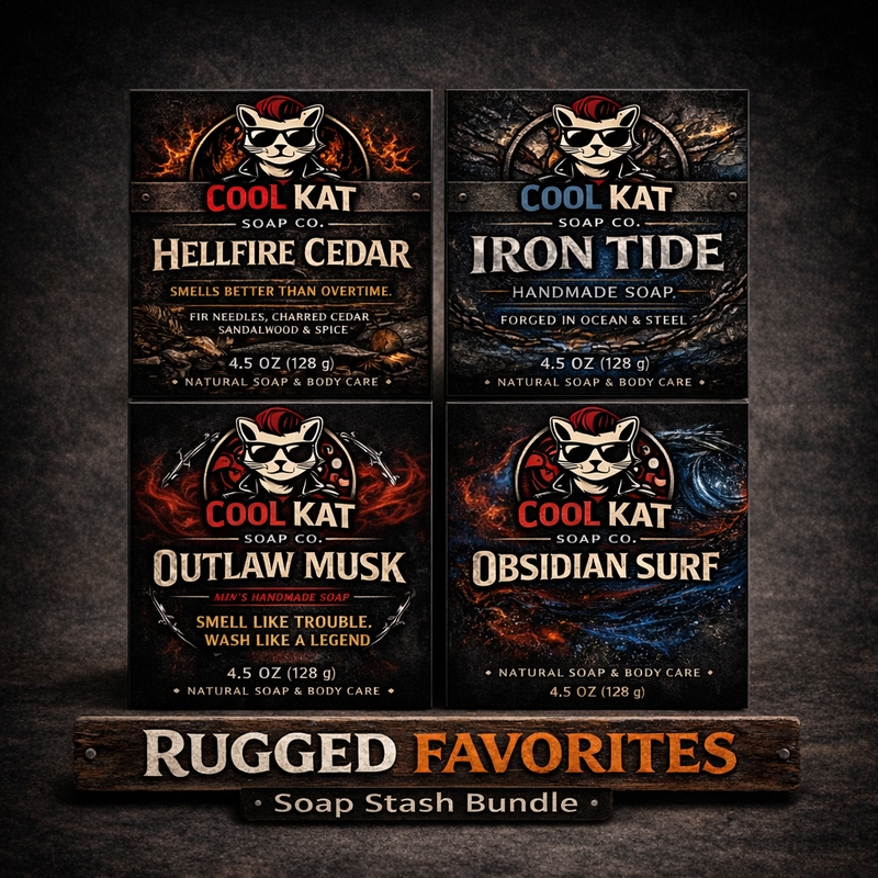 The Rugged Favorites Soap Stash Bundle brings together four of our most aggressive, best-selling scents—built for guys who want their soap to actually do something.